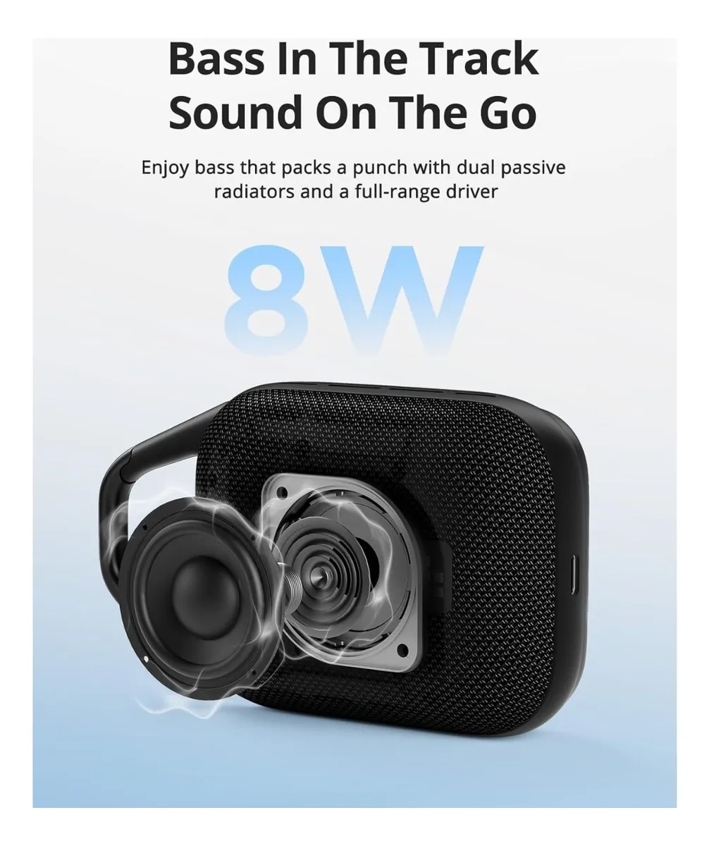 El parlante bluetooth Tronsmart Mirtune H1 combina portabilidad real y sonido potente en un tamaño compacto. Sus radiadores pasivos duales ofrecen graves intensos y un audio más amplio para exteriores, mientras que su mosquetón integrado te permite engancharlo fácilmente a mochila o cinturón. Con hasta 20 horas de batería, resistencia IPX7, Bluetooth 5.3, micrófono para llamadas manos libres, EQ personalizable por app y opción de emparejamiento estéreo TWS, es ideal para playa, piscina, caminatas, viajes y uso diario.