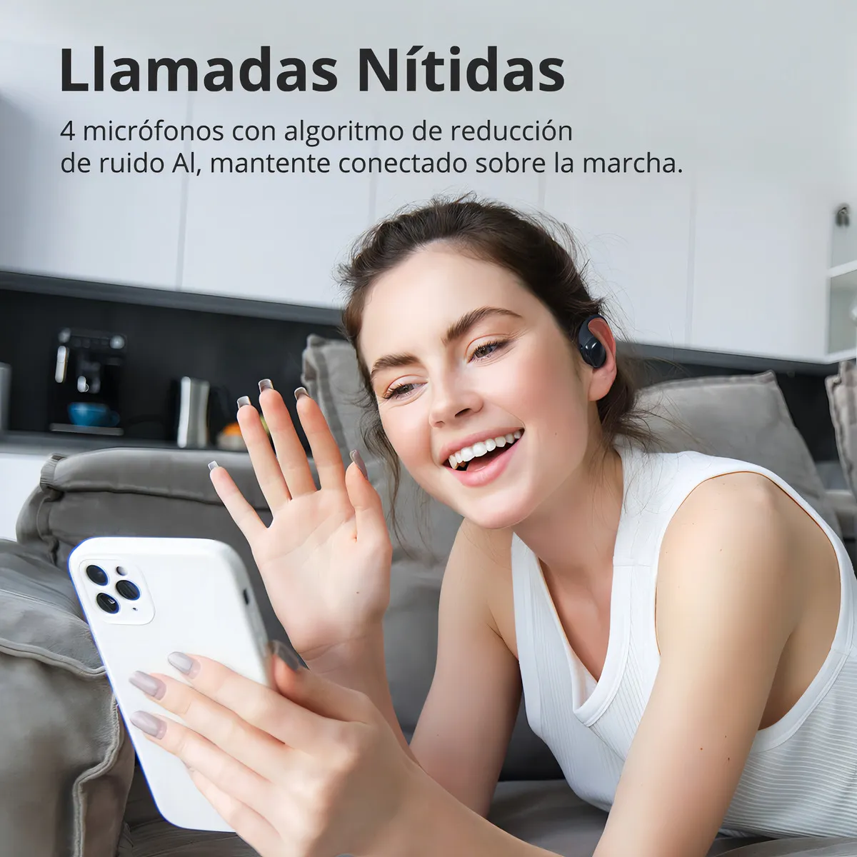 Para llamadas, integran 4 micrófonos con algoritmo de IA, que mejora la captación de tu voz y reduce el ruido ambiental, para que te escuchen con mayor claridad mientras te desplazas. Y como son de oreja abierta, mantienes una conciencia real del entorno: anuncios, bocinas o personas cerca, sin perder tu música.