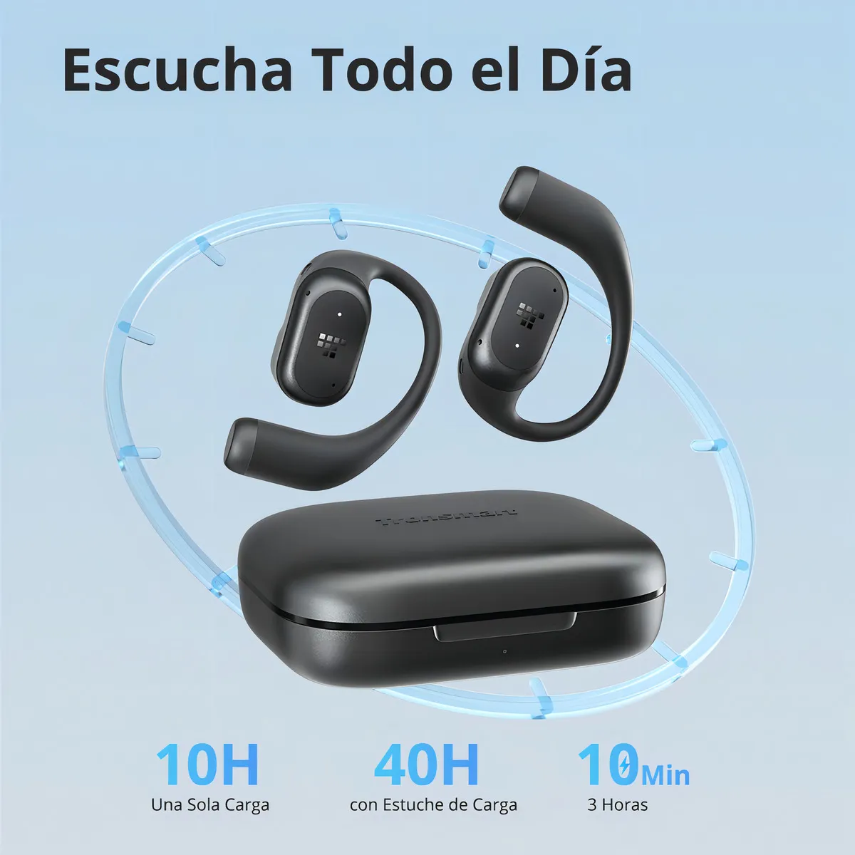 Si buscas escuchar música con comodidad, sin aislarte del entorno y con llamadas claras en movimiento, los Audífonos de oreja abierta Tronsmart OpenFly 2 Pro están hechos para ti. Su diseño open-ear reduce la presión dentro del oído y se apoya de forma segura y estable, ideal para uso prolongado en oficina, caminatas, transporte público o entrenamientos.