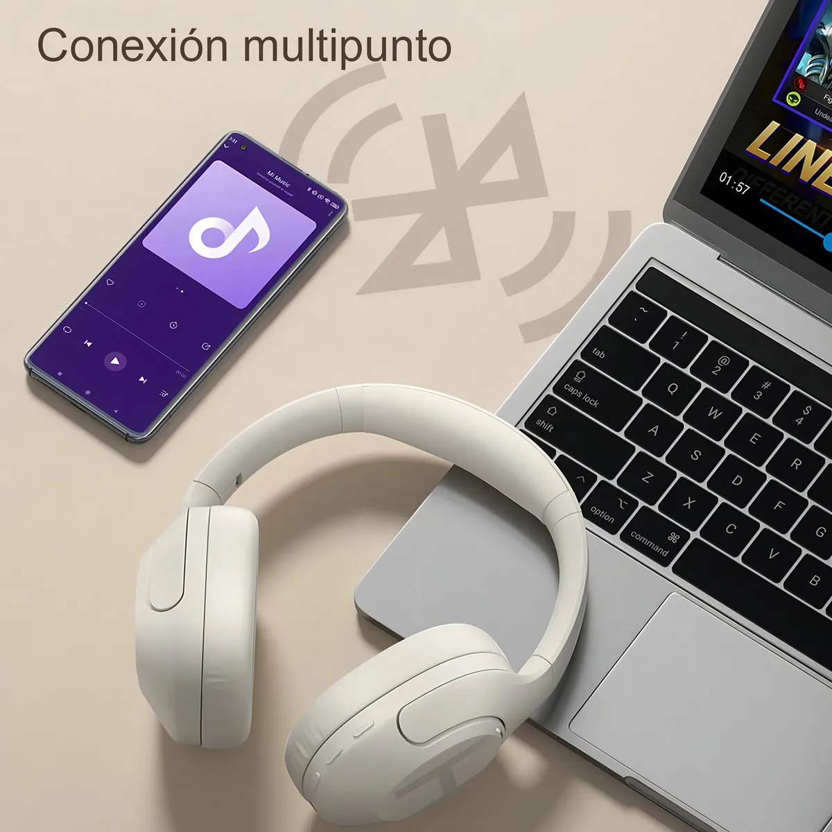 En calidad de audio, su driver dinámico de 40 mm entrega un sonido equilibrado con agudos claros, medios definidos y bajos potentes. Y cuando necesitas continuidad, el jack de 3,5 mm te permite seguir escuchando incluso si la batería está baja, manteniendo una gran calidad de reproducción.