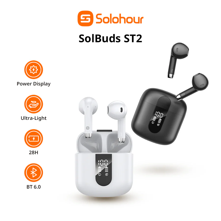 Los audífonos inalámbricos Solohour Solbuds ST2 están diseñados para quienes buscan una experiencia de audio cómoda, moderna y confiable durante todo el día. Gracias a su combinación de Bluetooth 6.0, sonido claro y batería de larga duración, este modelo se adapta muy bien a rutinas de trabajo, estudio, entrenamiento y entretenimiento.