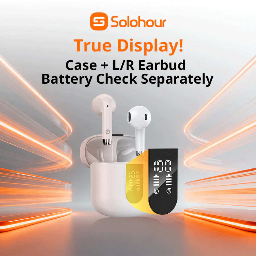 Los audífonos inalámbricos Solohour Solbuds ST2 ofrecen un equilibrio ideal entre sonido potente, comodidad y autonomía. Incorporan Bluetooth 6.0, drivers de 13 mm, modo gaming de baja latencia y una pantalla digital que muestra el nivel de batería del estuche y de los auriculares.