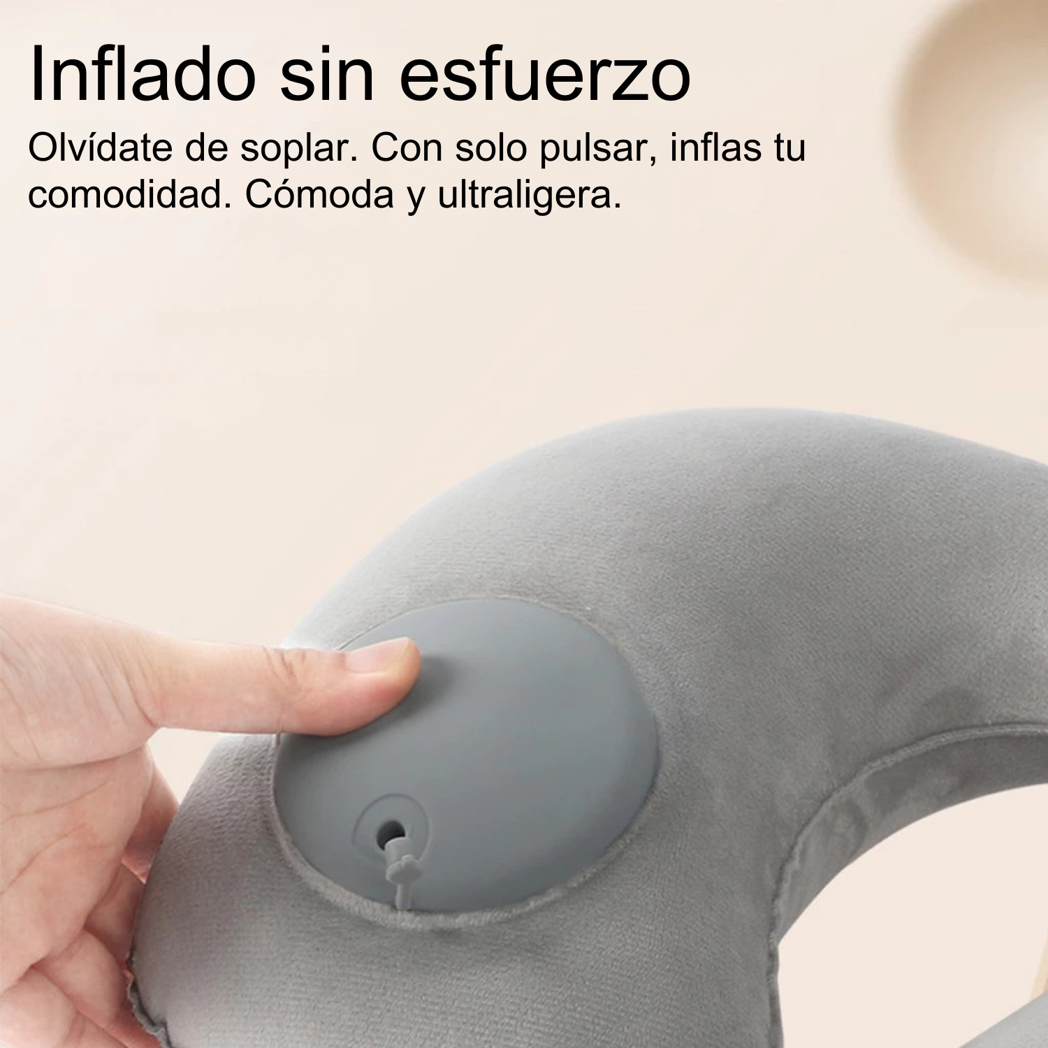 Su sistema de inflado por presión permite obtener soporte cervical en solo un minuto, logrando una sensación firme y ergonómica sin complicaciones. Gracias a su forma en U, se adapta al cuello para brindar estabilidad y ayudar a aliviar la tensión durante viajes largos en avión, tren o auto, manteniendo una postura más cómoda mientras descansas.
