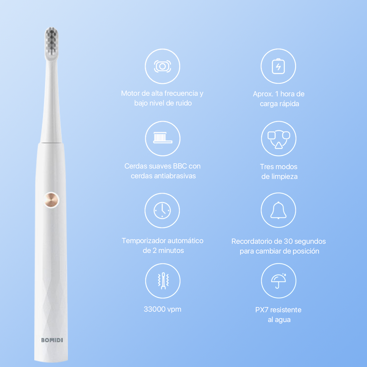 BOMIDI Cepillo Dental Eléctrico T501 Blanco USB