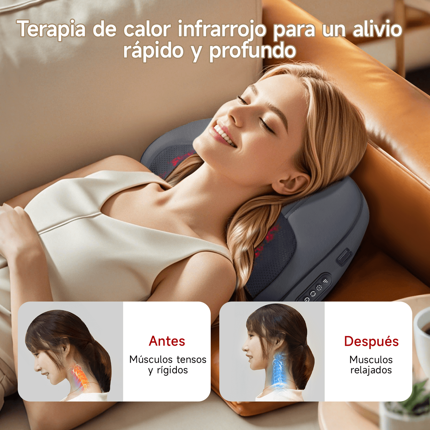 Es una excelente opción para quienes pasan muchas horas trabajando sentados, manejando o cargando tensión en cuello y espalda, y buscan un masajeador portátil, eficiente y fácil de usar.