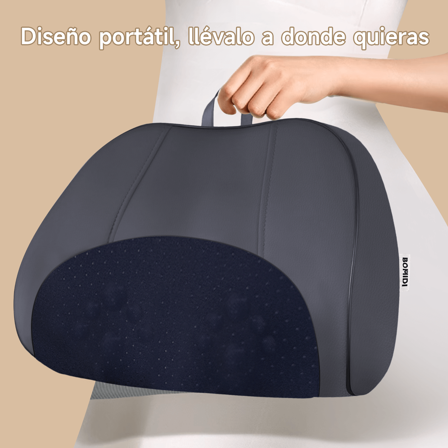 Almohada de Masaje BOMIDI MP1 Pro: masaje profundo tipo spa donde estés, sin cables. Su tecnología 3D bidireccional imita el amasado de unas manos para liberar tensión en pocos minutos, y el calor infrarrojo aporta un efecto terapéutico que ayuda a reducir rigidez y mejorar la sensación de relajación. Su diseño ergonómico con ranura en U se adapta cómodamente a cuello, espalda, zona lumbar y hombros.