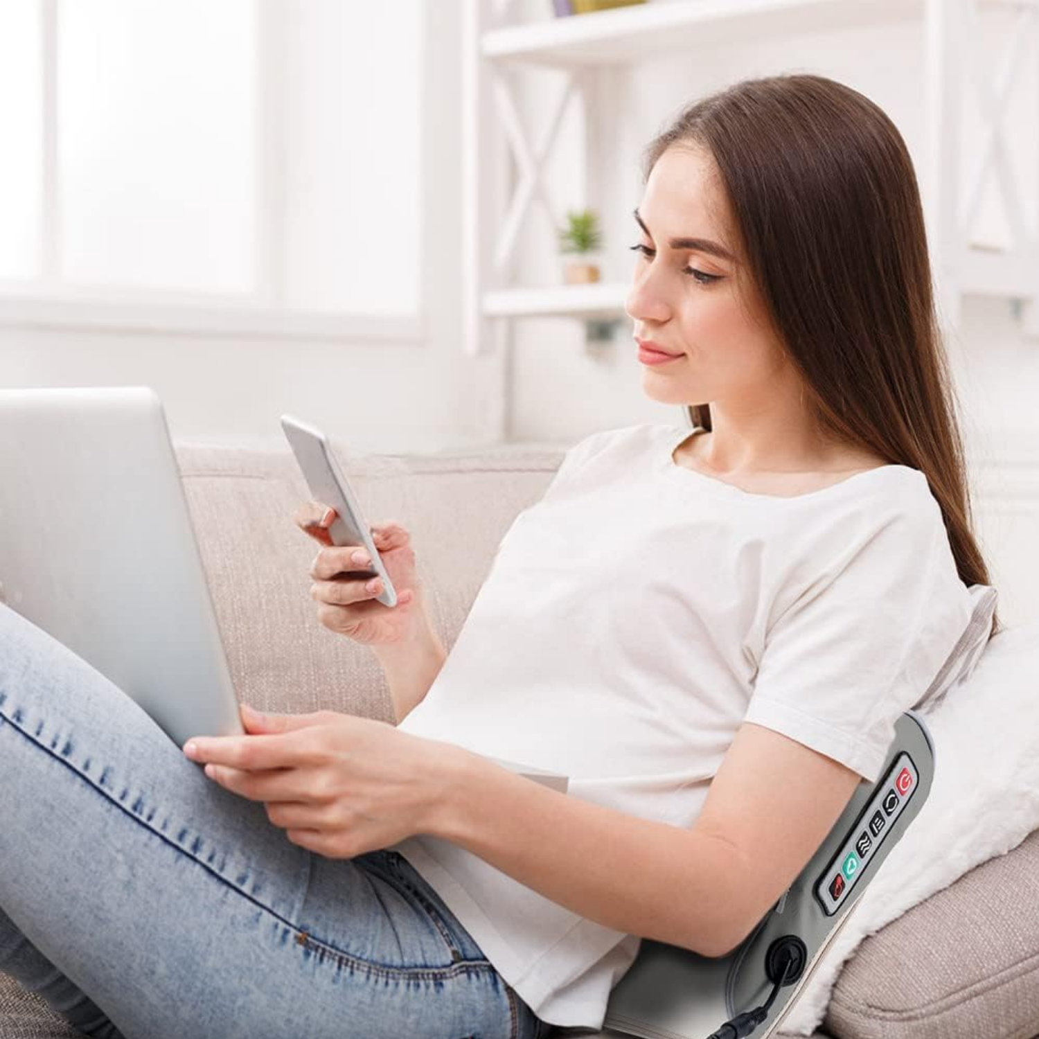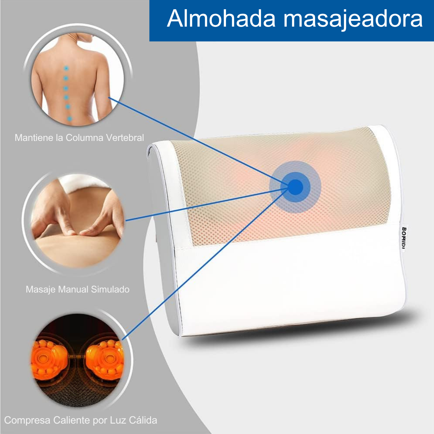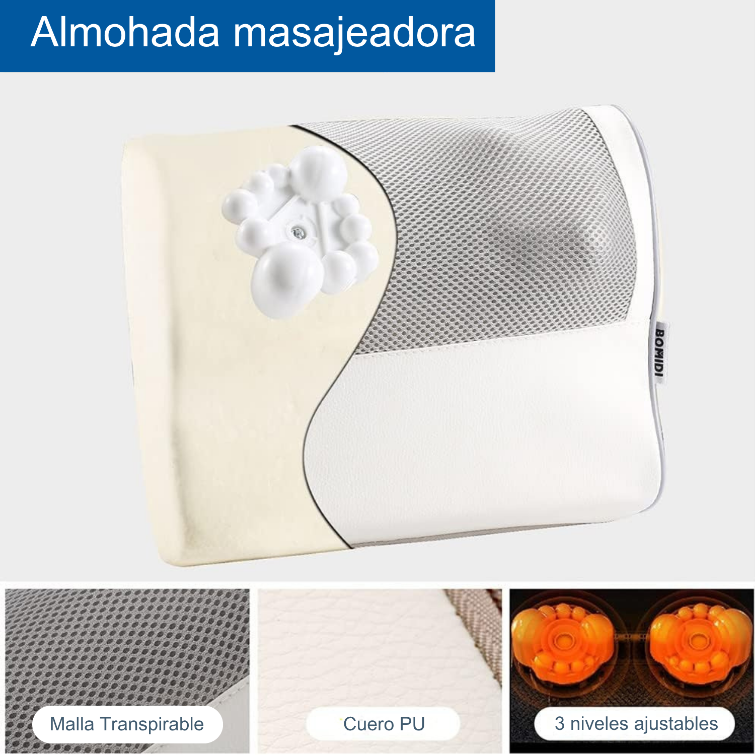 Convierte cualquier momento en una pausa de bienestar con el cojín masajeador con calor infrarrojo, diseñado para brindar alivio rápido y profundo en zonas clave como cuello, espalda, zona lumbar, abdomen y piernas. Este masajeador ergonómico combina tecnología shiatsu, calor infrarrojo terapéutico y vibración, ofreciendo una experiencia completa para reducir tensión, rigidez y fatiga muscular, ya sea en casa, en la oficina o en el auto.