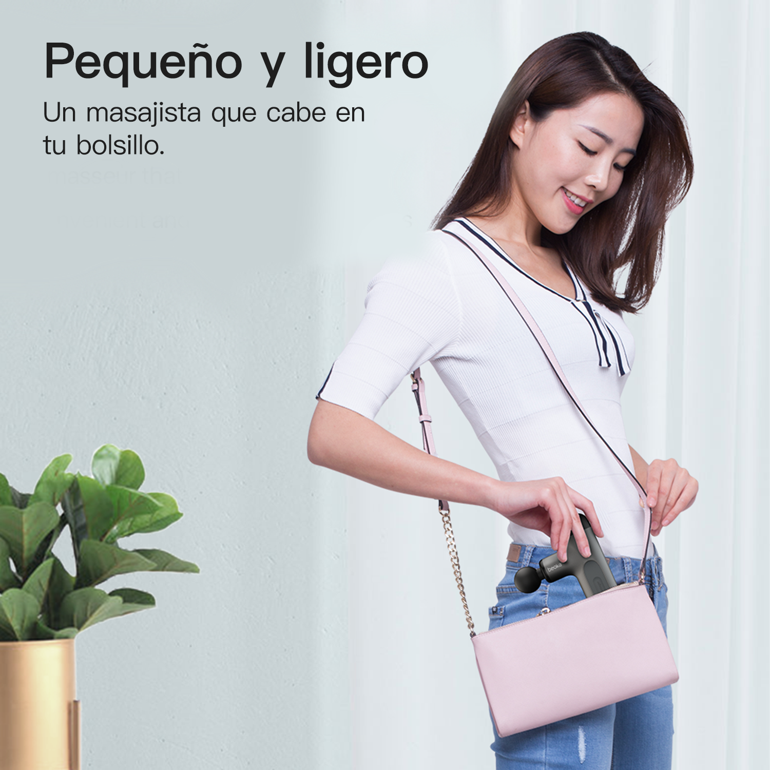 Gracias a sus 5 niveles de intensidad, puedes ajustar la fuerza del masaje según tu necesidad: desde una recuperación suave después de un día largo, hasta una terapia más intensa post entrenamiento. Además, su diseño ultraligero de 230 g facilita el uso con una sola mano y la hace perfecta para llevarla al gimnasio, viajes o usarla en casa sin ocupar espacio.