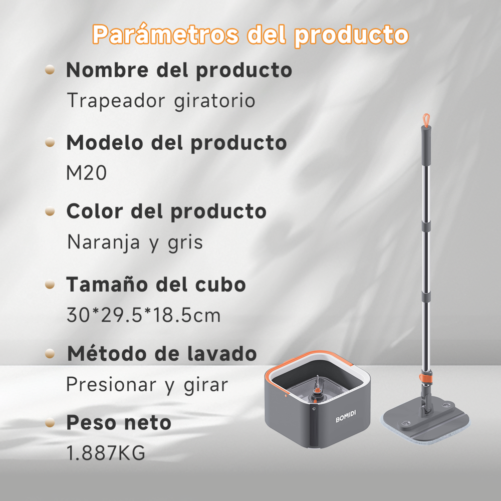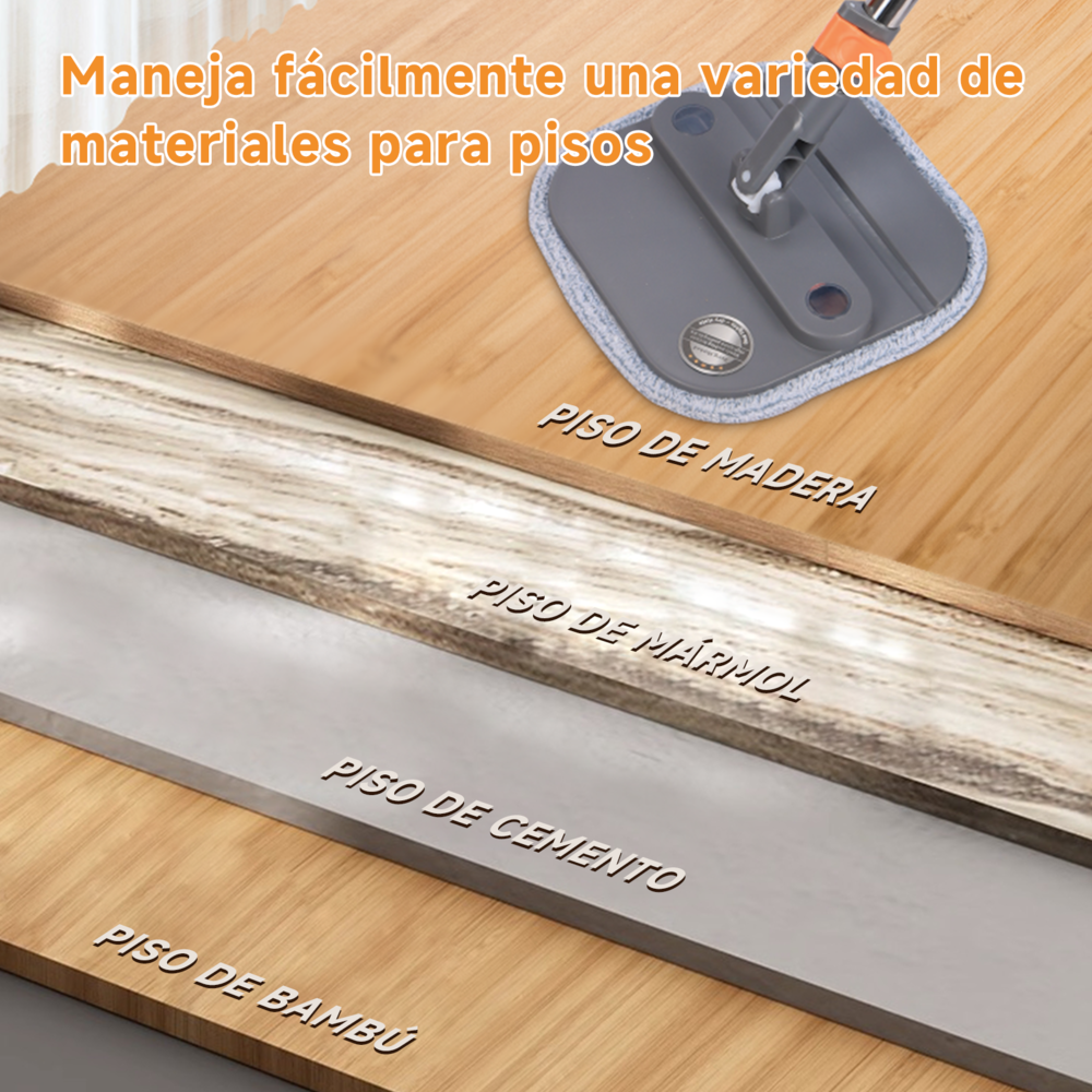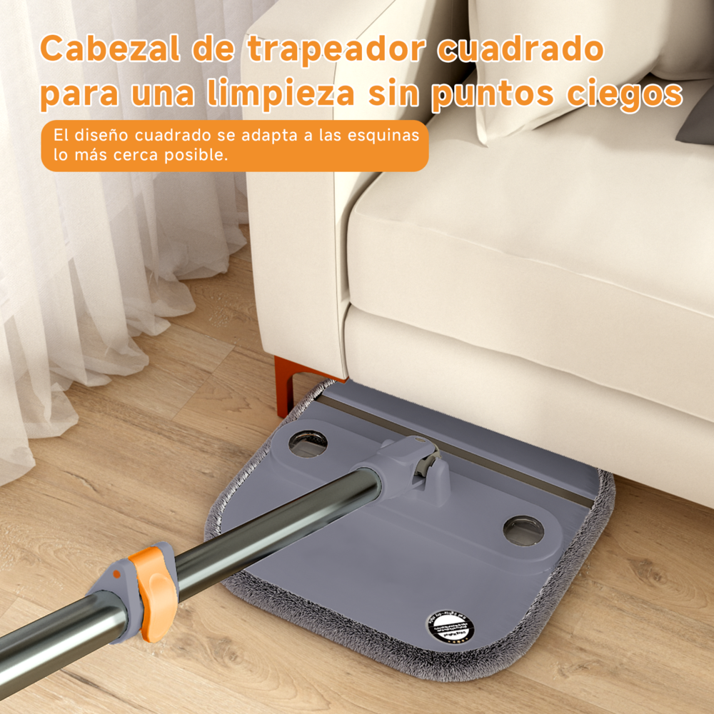 La cubeta de doble capa ayuda a reducir la propagación de gérmenes y suciedad, ya que siempre limpias con agua fresca. Además, gracias a su rotación 360°, este trapeador permite limpiar sin esfuerzo físico: no necesitas agacharte ni retorcer la microfibra con las manos. Es perfecto para personas que valoran la comodidad, o que buscan cuidar la espalda mientras mantienen la casa en orden.