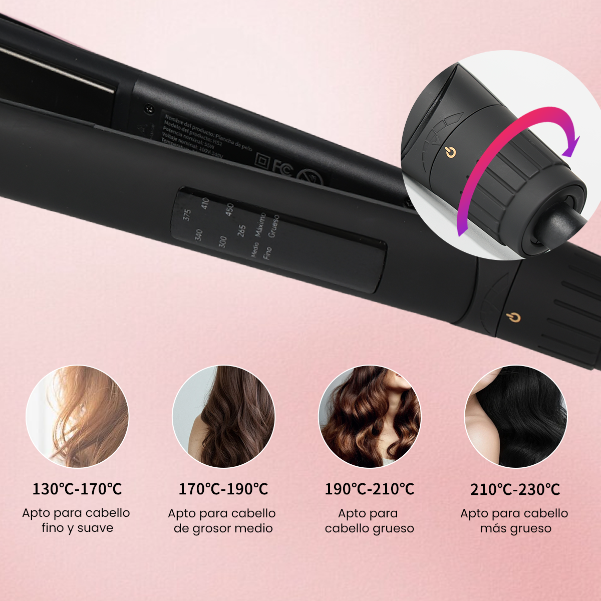 Su diseño ergonómico con control práctico facilita encender, apagar y ajustar la temperatura de manera simple. Además, el cable giratorio de 360° evita enredos y te da libertad de movimiento, haciendo el peinado más fluido y sin molestias.