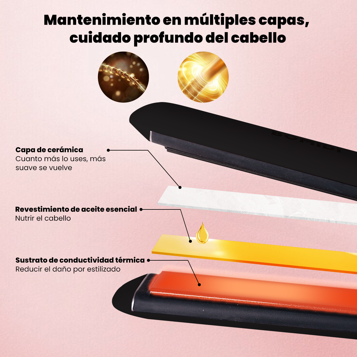 La Plancha de Cabello BOMIDI HS2 incorpora una capa cerámica y un recubrimiento de aceite esencial, pensados para minimizar el daño térmico y favorecer un acabado más sedoso. El resultado: cabello con más brillo, textura suave y un look pulido que se mantiene por más tiempo.