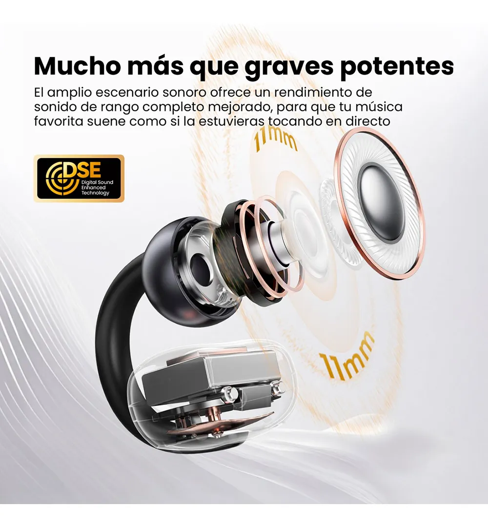 La calidad de sonido es excepcional, con graves profundos y agudos claros, lo que transforma cada escucha en una experiencia envolvente. Ya sea para disfrutar de tus playlists favoritas o para atender llamadas, los Haylou Airfree OW03 se adaptan a tus necesidades con facilidad.