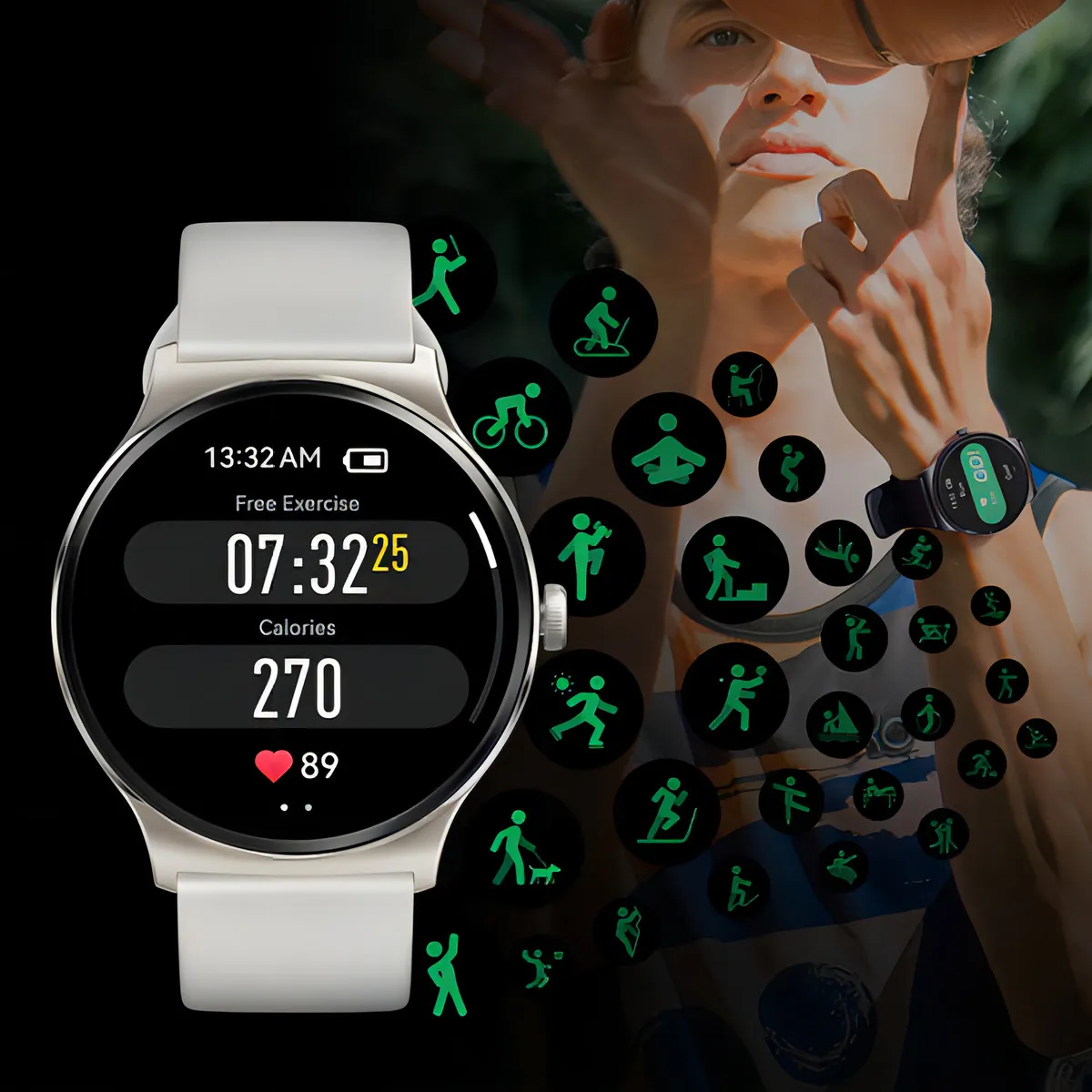 Mantente conectado sin perder nada importante: tras vincularlo por Bluetooth 5.3, podrás recibir notificaciones en tiempo real de llamadas, WeChat y múltiples aplicaciones, con recordatorios para tus momentos clave. Además, podrás expresar tu estilo con más de 100 carátulas en línea o personalizar la esfera con tu foto favorita.