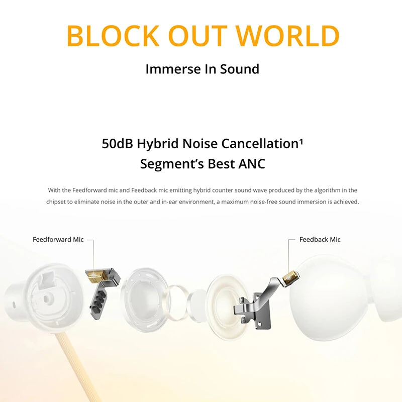 La gran protagonista es su cancelación activa de ruido híbrida (ANC) de hasta 50 dB, que utiliza un sistema premium de micrófonos de avance y retroalimentación para reducir el ruido ambiental. Ya sea en un tren, una calle con tráfico o un espacio concurrido, su reducción de ruido adaptativa de tres niveles analiza el entorno y ajusta automáticamente el ANC para lograr un aislamiento más preciso y confortable.