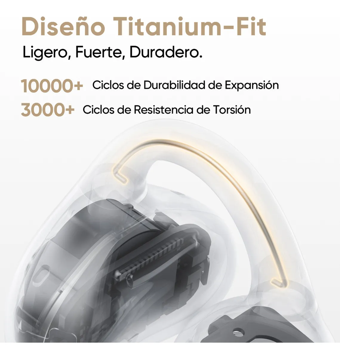 Con solo 5.3 g por auricular (aprox.), los realme Buds OpenWear Clip destacan por su uso prolongado sin fatiga. Su acabado mate Titanium y sus colores Titanium Gold y Titanium Black aportan un estilo moderno y premium, perfecto para quienes buscan un accesorio que combine con todo.