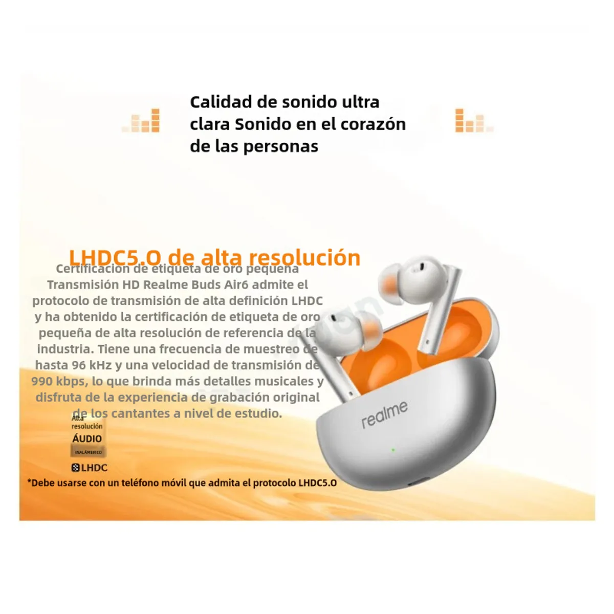 Disfruta tu música como fue pensada con los realme Buds Air 6, audífonos inalámbricos diseñados para entregar una experiencia de sonido a nivel de estudio. Con certificación oficial Hi-Res, ofrecen una reproducción más fiel y detallada, ideal para quienes buscan claridad, potencia y un audio más “real” en cada canción, podcast o película.