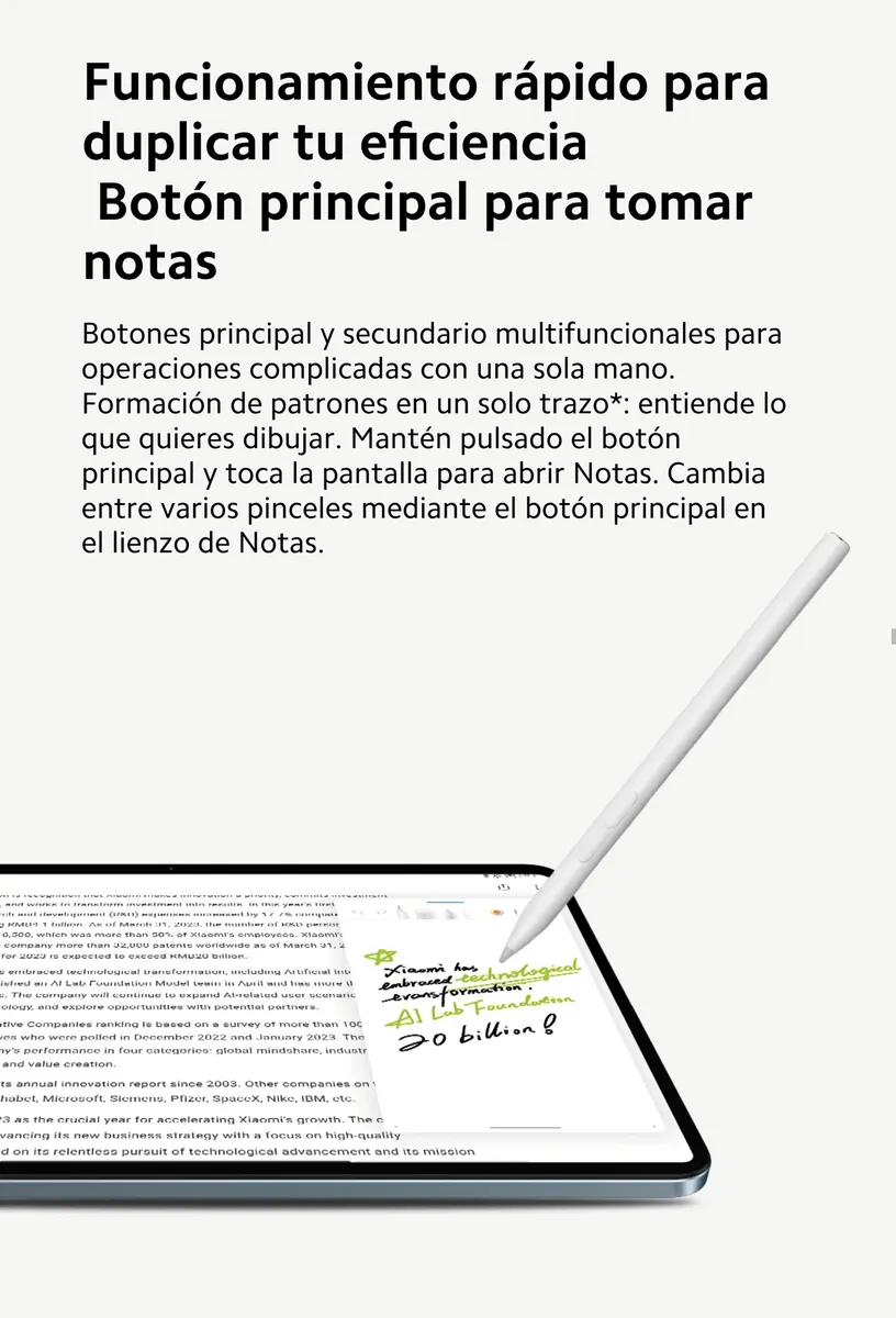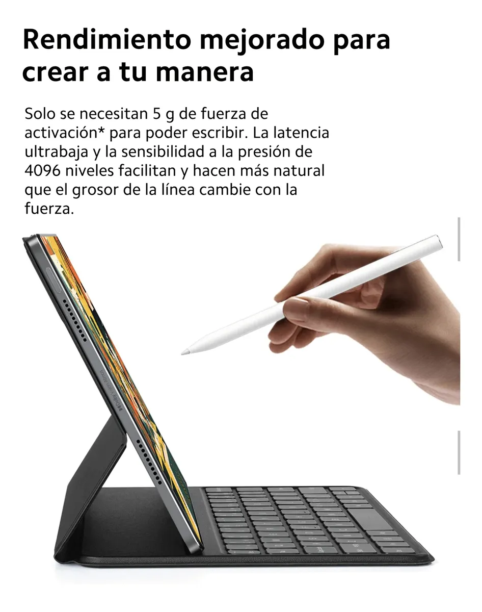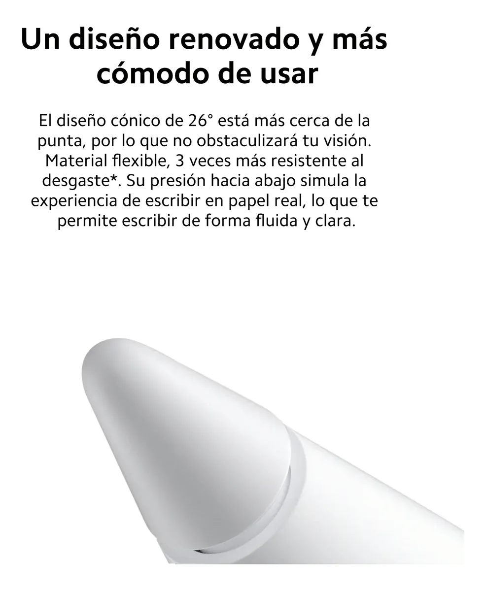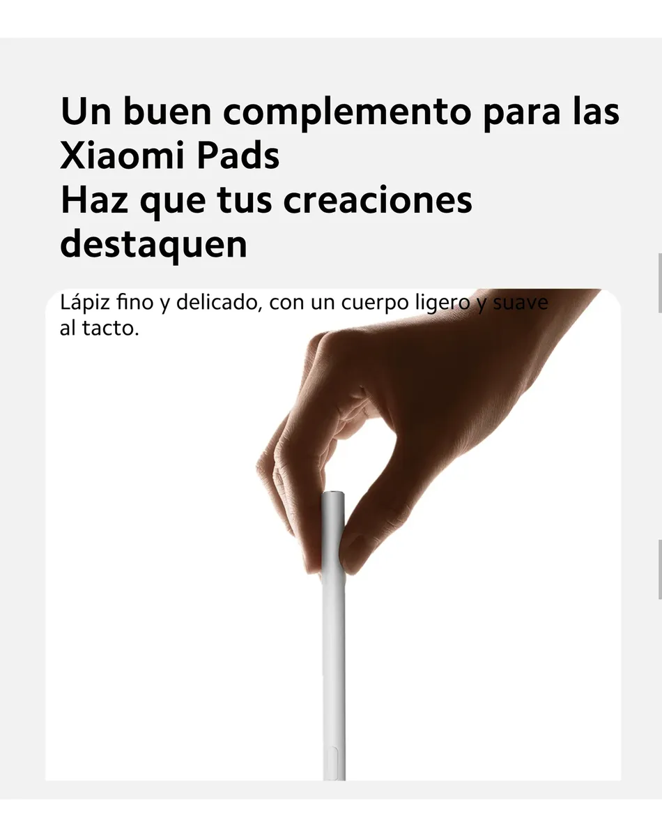 El lápiz para Xiaomi Pad te ayuda a escribir y dibujar con mayor naturalidad. Su punta de elastómero de 26° mejora la visibilidad y el control. Además, el material flexible aporta comodidad y resistencia.